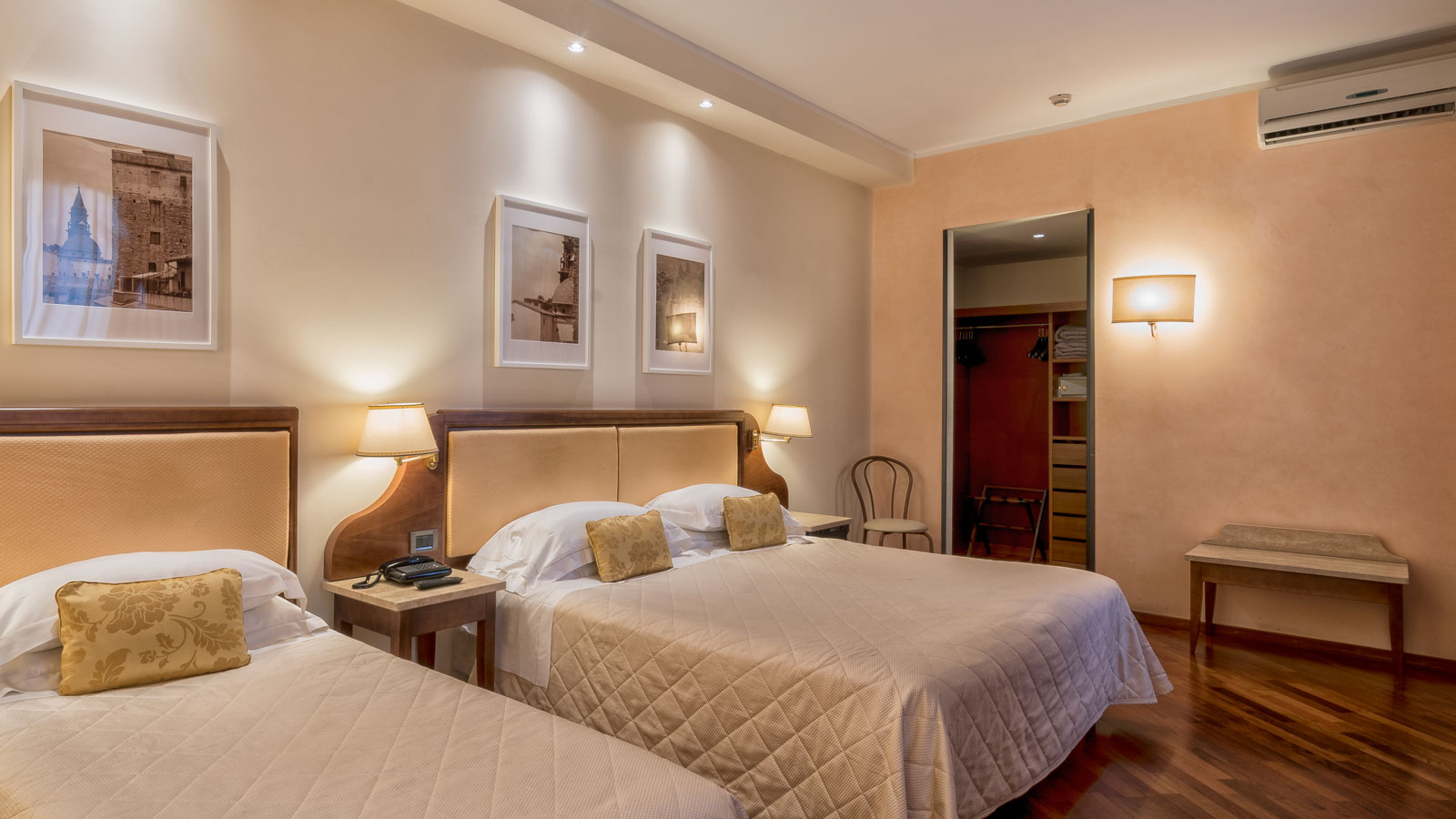 Le camere triple dell'Hotel Pitti Palace al Ponte Vecchio sono spaziose comode e accoglienti, ideale per le famiglie che hanno anche un bimbo piccolo perché grazie alla sua ampiezza accoglie comodamente anche una culla. Oltre alle caratteristiche tecniche la camera tripla è speciale anche per il suo affaccio, uno scrocio sul famosissimo Corridoio Vasariano del 1565 costruito dall'architetto Giorgio Vasari per volere di Cosimo I de' Medici.