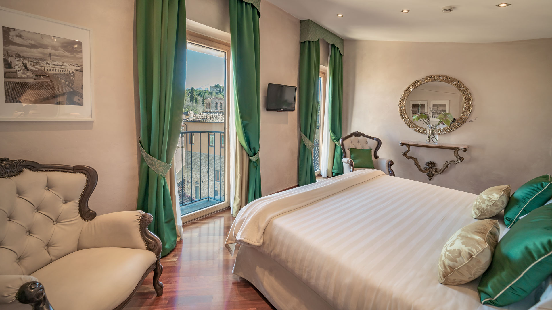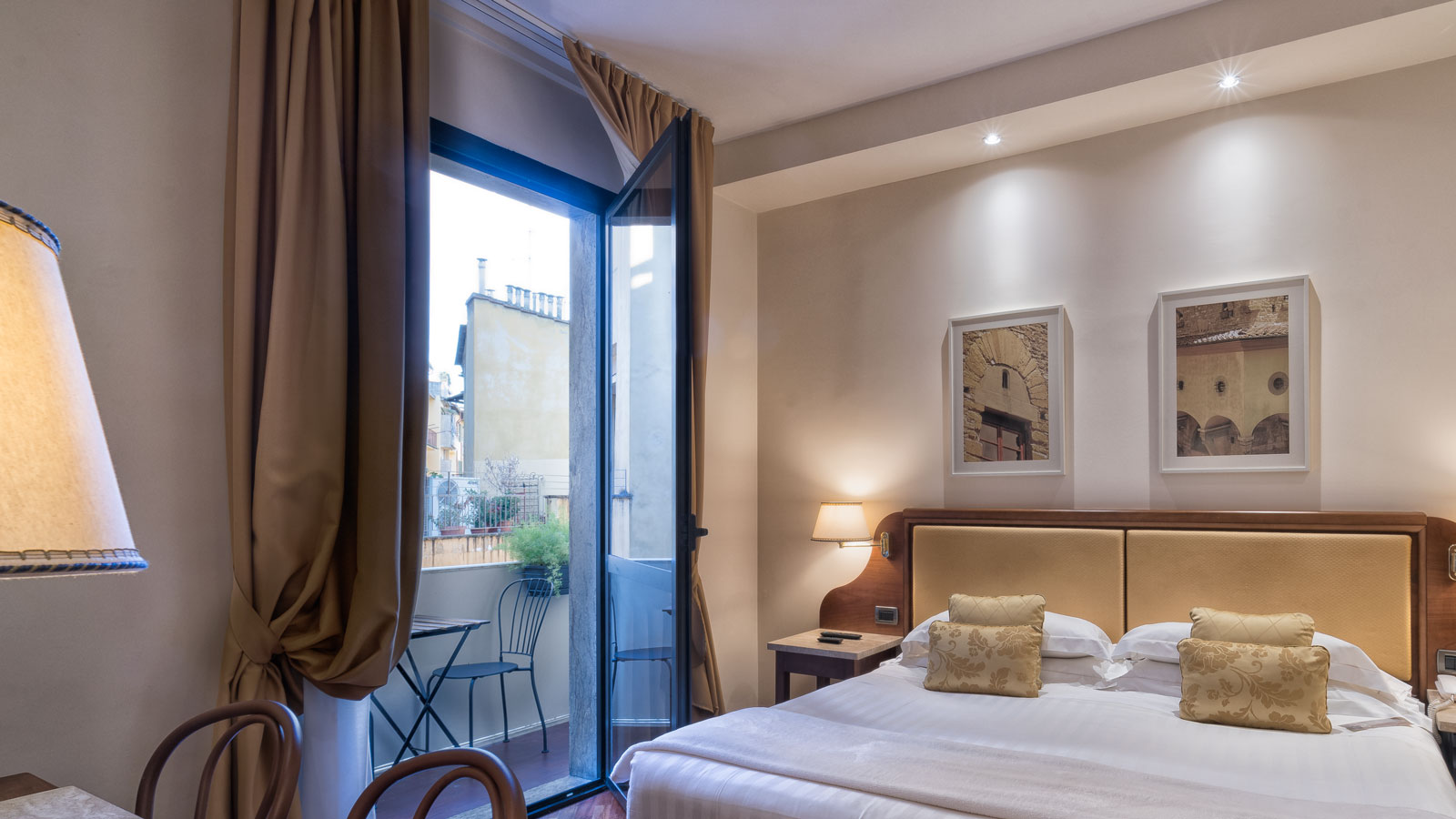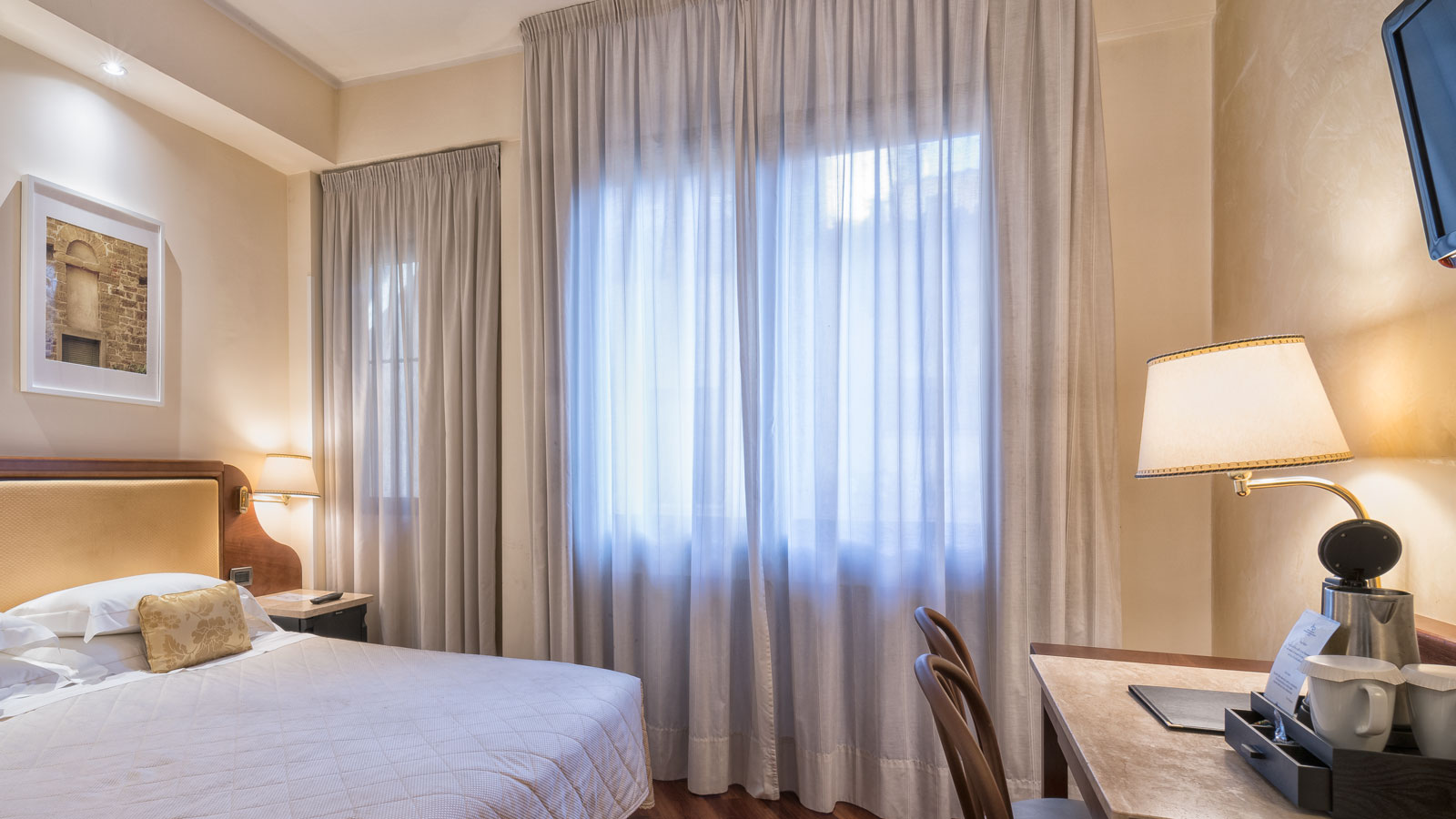 Todas nuestras habitaciones han sido renovadas y decoradas con mobiliario clásico, enriquecidas con comodidades tecnológicas para darles la bienvenida a nuestros Huéspedes con estilo, elegancia y eficiencia; hemos prestado especial atención incluso a los detalles más pequeños, para ofrecerles a nuestros Huéspedes un momento de relajación entre los brazos de una ciudad histórica.