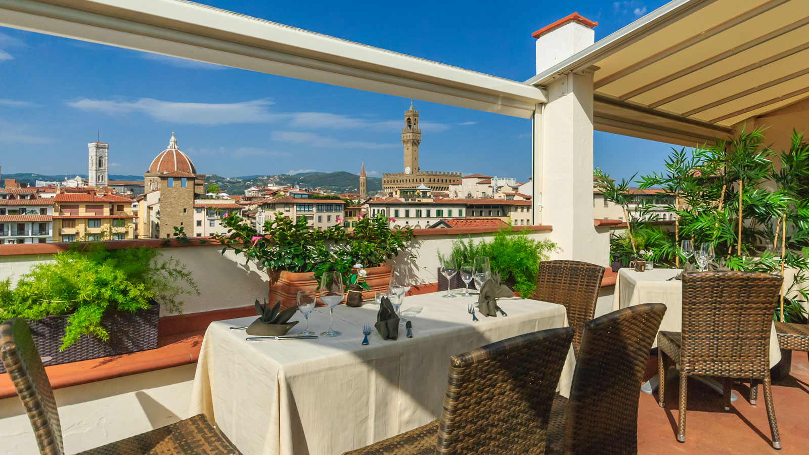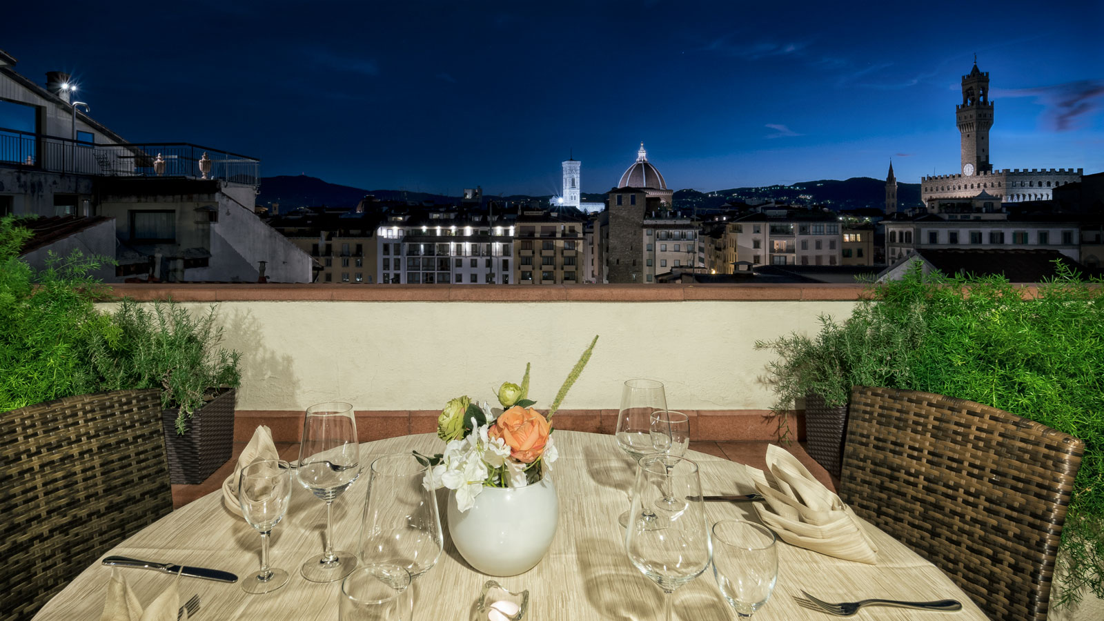 “Alla Torre De’ Rossi” Ristorante Wine Bar AL 6° piano del nostro Hotel, offre ai nostri Ospiti una vista panoramica su Firenze a 360° sia dalle due bellissime Terrazze che dalle finestre che si aprono sulla Città.